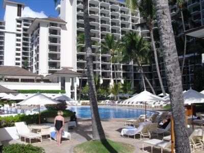 朝のプールサイドでの熾烈な椅子取り合戦もありません。(別のホテルでは、朝の7時くらいからお父さんが雑誌などを持ってプールサイドへ、ラナイから大声で場所を指示するお母さんなんて光景もみられます^^;)チェアに座ると、プールスタッフがタオルをセッティングしに来てくれて、優雅に過ごせます。