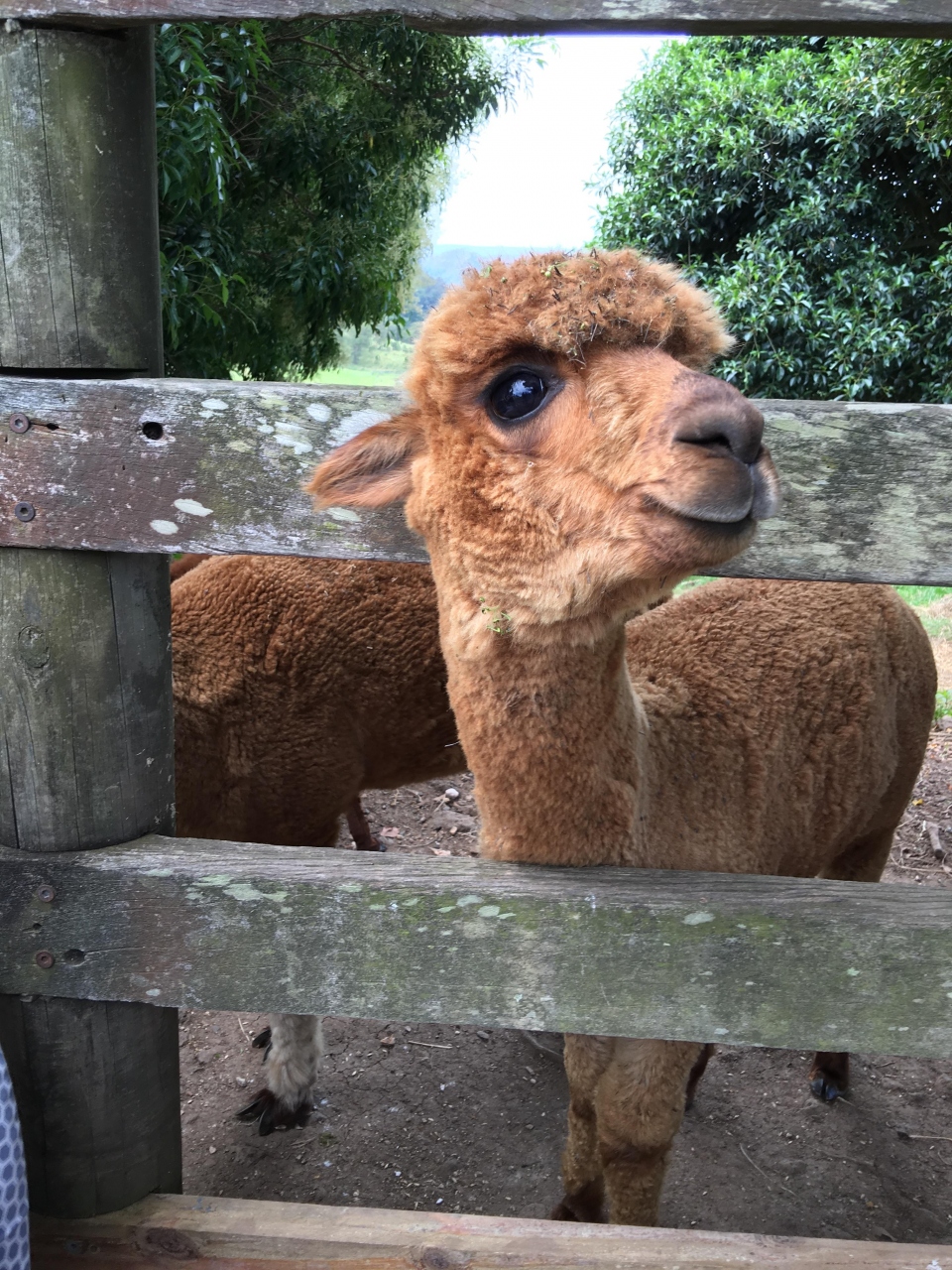駐車場には記念撮影用の白いアルパカがいて一緒に写真撮影ができます。