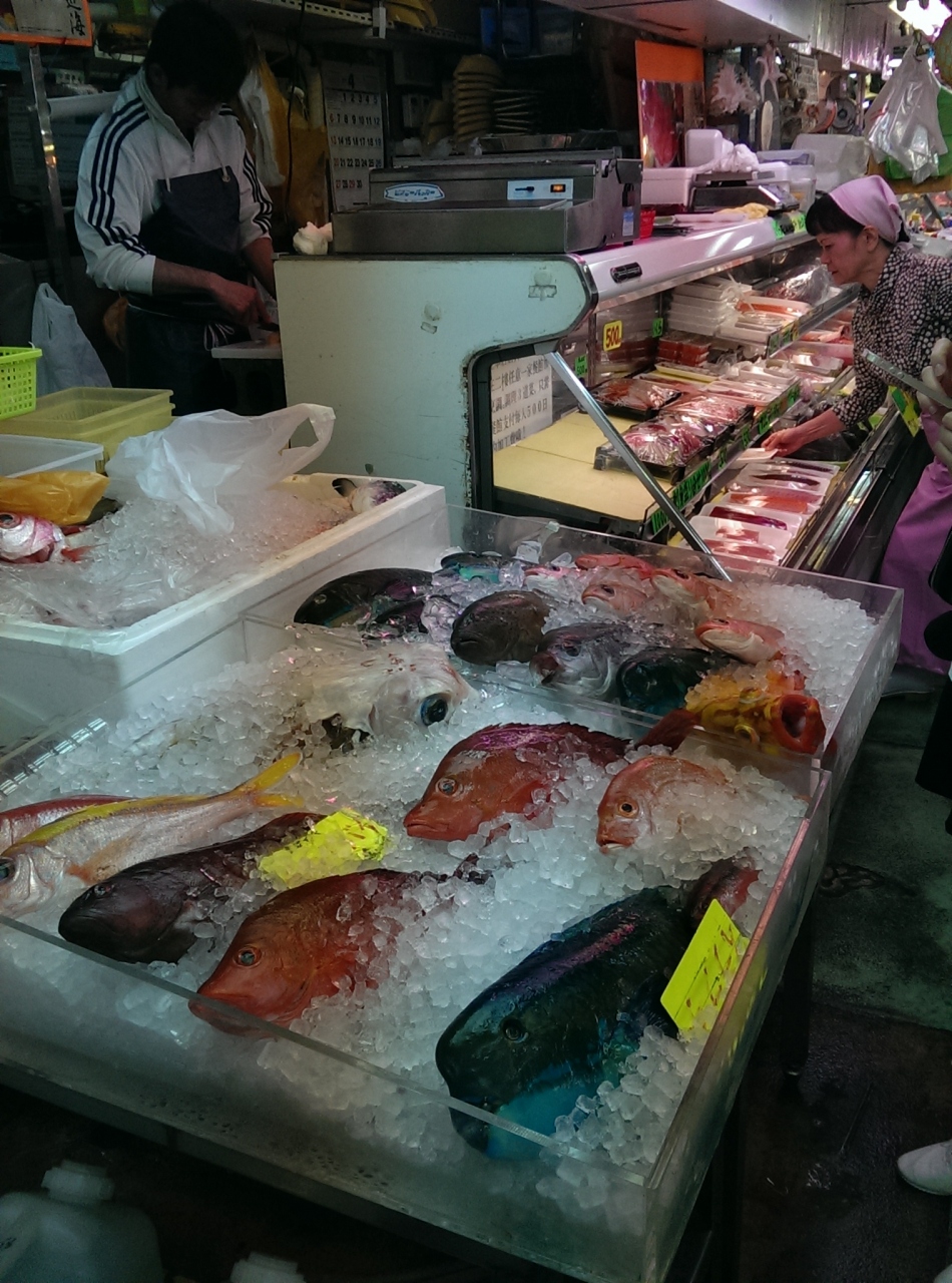 色鮮やかな魚や豚の顔なんかあって南国食材がズラリと、一階の鮮魚店で買った食材を二階の飲食店で調理してくれるみたいでしたが食事をすませたばかりだったので今回はあきらめましたが、次回食べてみよう。
