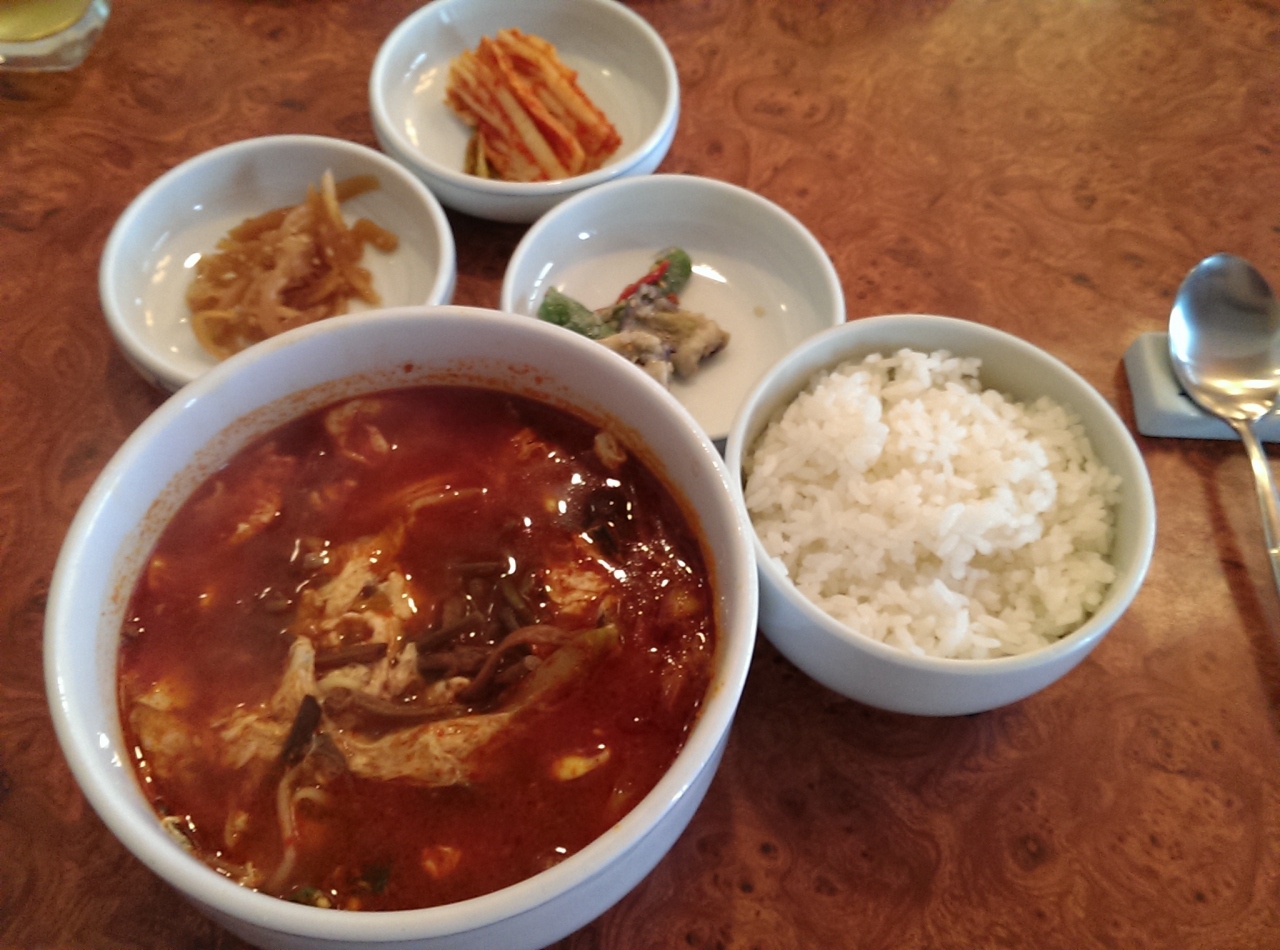 キムチや食材等も販売してる一階から狭い階段を登って二階へ、1時過ぎてるのにたくさんのお客さんがいますが回転がよいのですぐに案内してくれました。