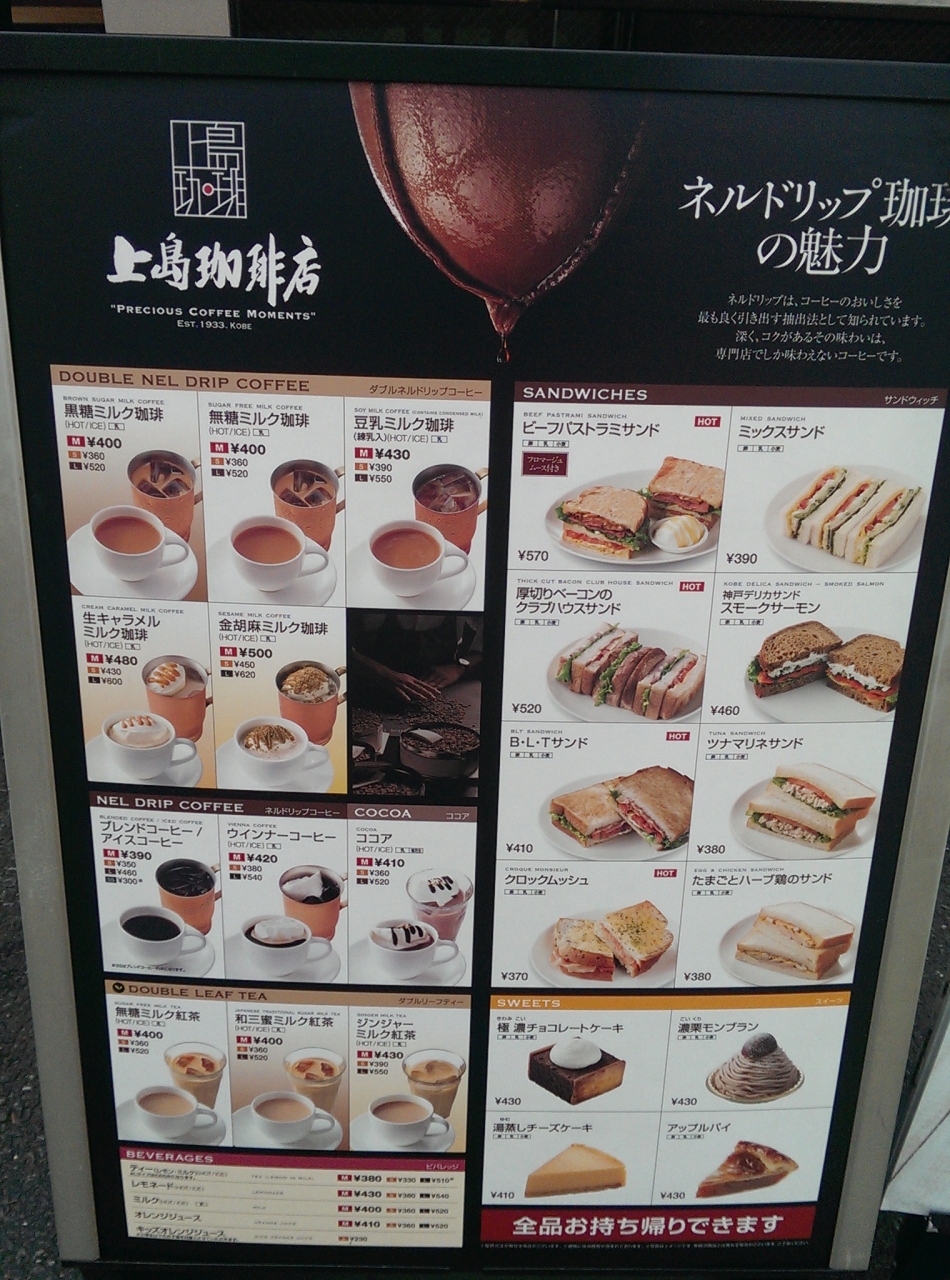 上島珈琲の金属のマグカップで提供されるキンキンに冷えたアイスものが好みなのと、他のチェーン店にはない味わいの黒糖ミルク珈琲を求めて利用してます。