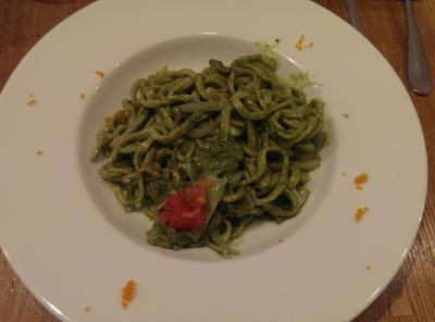 パスタは極太のねじれ麺とソースが絡まり美味しいです。食べごたえもあるので男性でも満足できます。