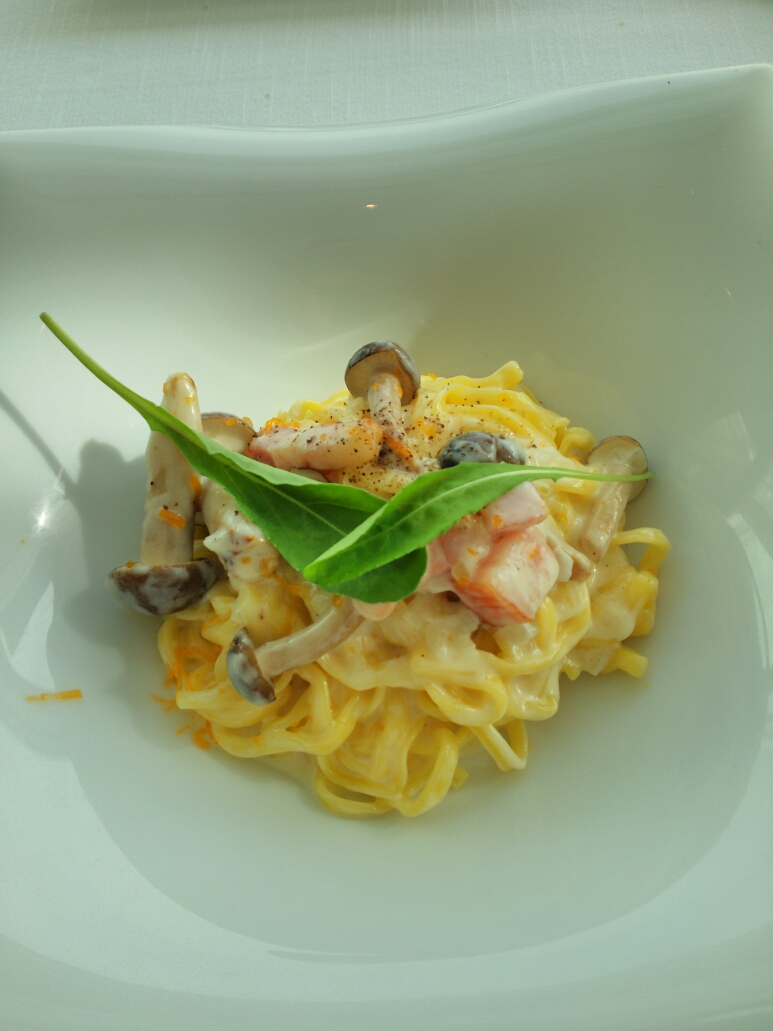 パスタランチ(前菜+パスタ)¥1080に。パスタの種類によっては¥1300に変わっていました。