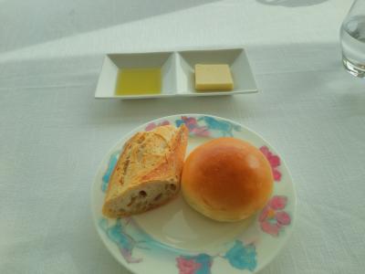 まず最初に、アツアツの自家製パンと共に自家製バターが運ばれる。
