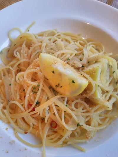 パスタは(レモンと魚醤のスパゲッティ) 意外すぎる組み合わせだったけど、レモンと魚醤の香りがとーっても爽やかで、すっごく美味しいです。