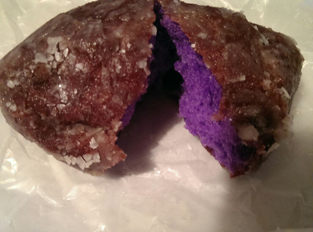 売られているのが『ポイ・グレーズド』(¥180/1個)なんですが、見ての通り中身が“紫色”なんです
