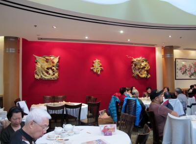 昼間は飲茶で、満席でした。中国系(中国人)が多いですが、白人もちらほらいます。午後1時過ぎに行ったためか、予約なしでも10分ほどの待ち時間で 席に着くことができました。