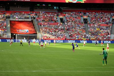 1階席と2階席がありますが、財布と空き状況に余裕があれば 1階席を強くお勧めします。ワールドカップで なでしこジャパンの応援のため、1階席(スイス戦)と2階席(カメルーン戦)で応援しました。1階席からは選手が間近に見えますが、2階席からは点のようにしか見えません。
