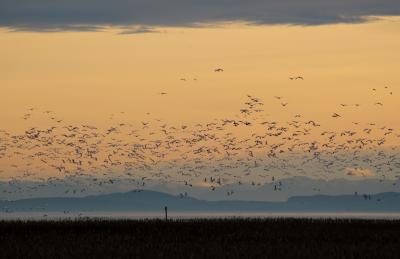 この保護区はハクガン(白雁)という渡り鳥で有名です。ハクガンは、ロシア北極圏にあるウランゲリ島から10月中旬~12月中旬と3月中旬~4月中旬の間、ここに越冬にやってきます (12月中旬~3月中旬は さらに南の米国ワシントン州スカジット川に移動)。
