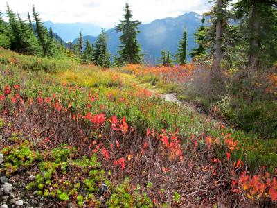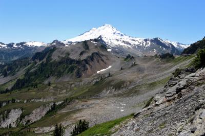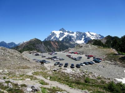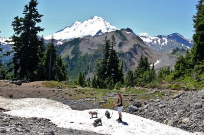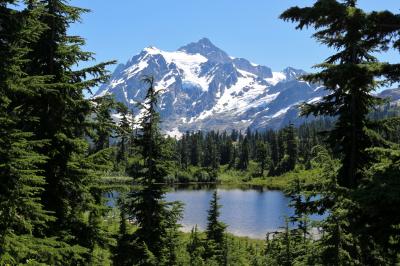 ベーカー山は、標高3,285メートルの北カスケード山脈の最高峰です。その麓の標高1,545メートル地点(アーティスト・ポイント)まで自動車行くことができ、そこから氷河に覆われたベーカー山やシャックザン山(標高 2,783メートル)を展望できる いくつかのハイキング・トレイルが出ています。