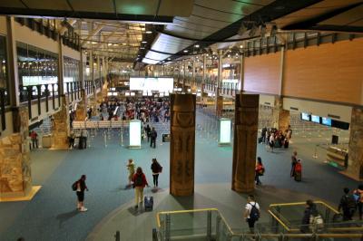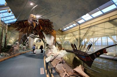 空港内はトーテムポールなど、先住民のアートが飾られています。一番有名なアートは、出発ロビーにある“ハイダ・グアイの精神”(ビル・リード作)で、旧20ドル札紙幣にも描かれていました。