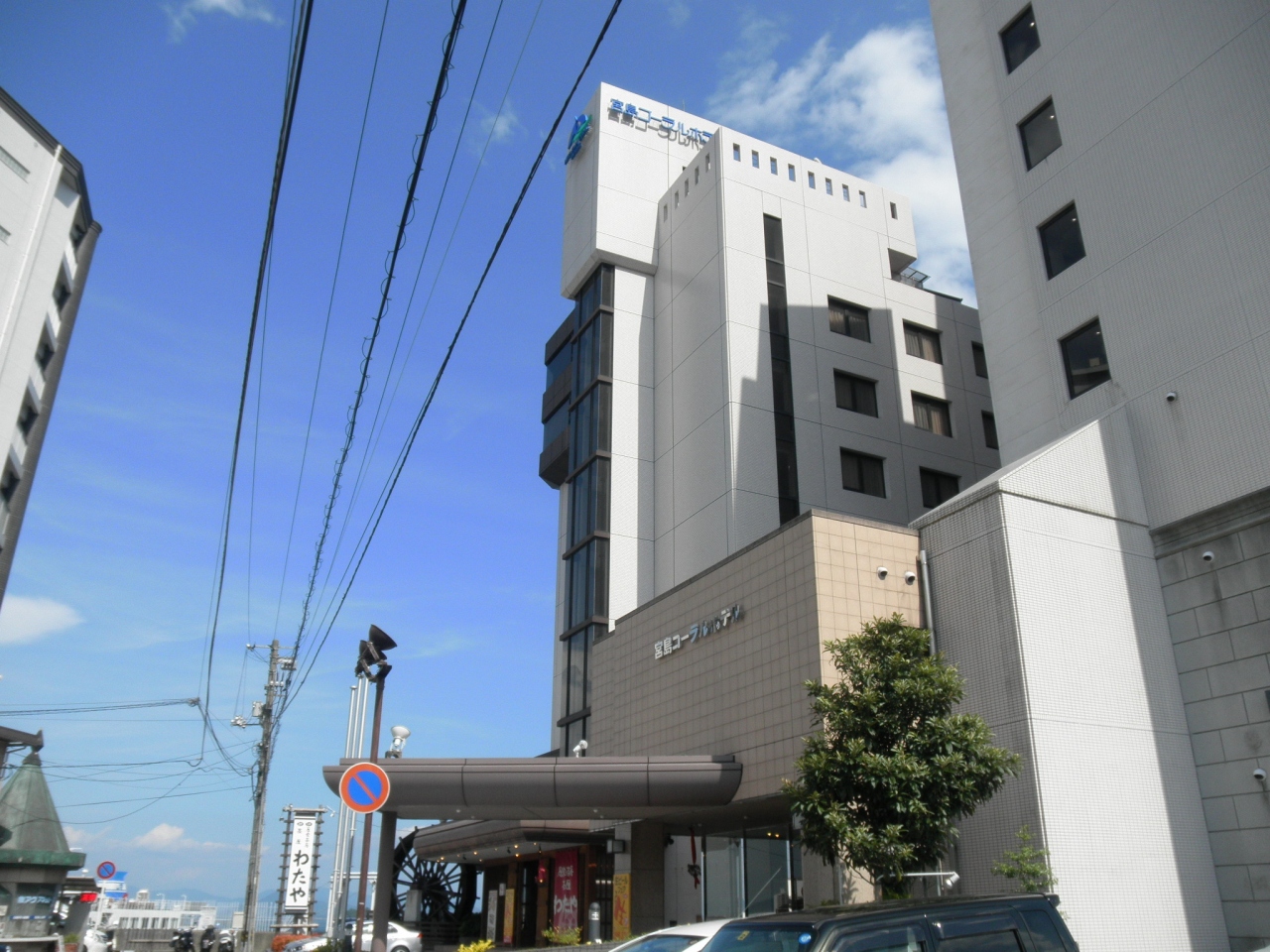 フェリー乗り場周辺の時間貸駐車場はどこも満車でしたが、私たちはホテルの駐車場にレンタカーを停めたので、駐車場探しをしなくて済みます。