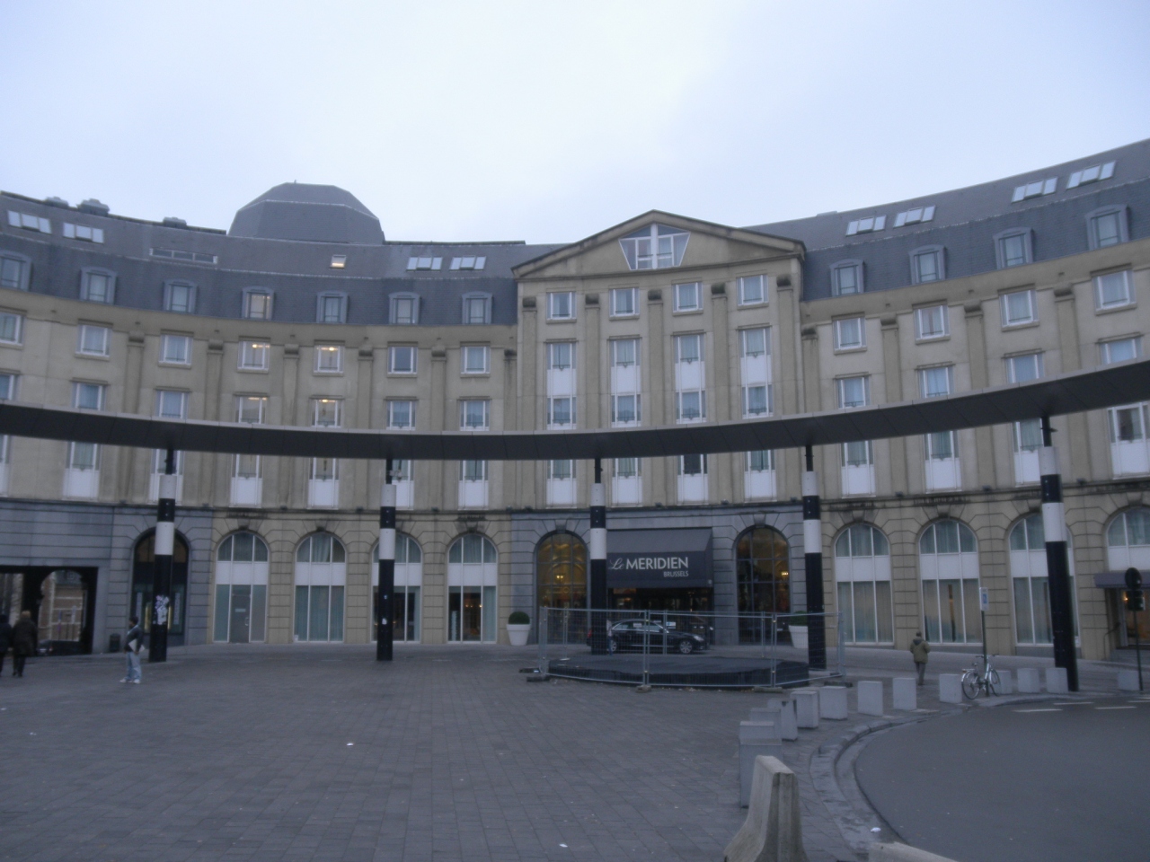 このホテルを選んだ理由は立地。電車でブリュッセル中央駅に到着するのが夜になる為、とにかく駅から近いホテルがよかった。結果大正解!googleマップとかで見た限り、駅を出て大きな道路を渡るイメージだったけど、駅を出ると歩行者専用のロータリーのようになっていて、まさに目の前にル メリディアン ブリュッセルがバーンと聳えている。小雨も降ってたけど問題なし。迷うことも怖い思いすることも全くない近さ。