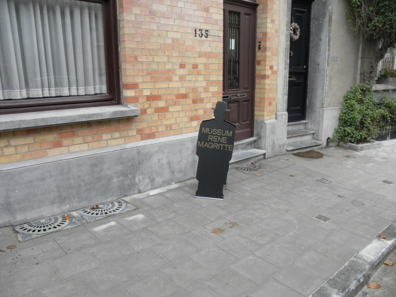 まず行き方ですが、トラムの94号線のCimetiere de Jetteで降ります。私は王立美術館前から乗車し、時間計るの忘れましたが、30分くらいではないかと思います。進行方向右側を見ていると、Cimetiere de Jetteの直前に案内標識(写真載せてます)が見えます。トラムを降りたらその案内標識の所まで戻り、矢印の方向へ住宅街を進んで行きます。ここで大事なのが右側の歩道を歩くということ!マグリットの家は右側に建っていて、歩道に置いてある看板が小さく、道にはずーっと路駐車があるので、左側を歩いていると看板に気付けません。