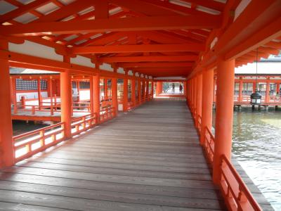 私たちのように、干潮時と満潮時(しかもこの順番で)両方訪れるのが理想かもしれません。私たちは2回とも拝観料を払って社殿内に入りましたが、干潮時は砂浜から社殿に近寄れますので、中に入らず、外から眺めるだけで十分です。まず干潮時に外から眺め、満潮まで宮島内を見学し(私たちは行かれませんでしたが、宮島内には嚴島神社以外にも色々見所があります。ただし、どこも16時~17時には閉まってしまうので要注意)、満潮に近い時間に嚴島神社内に入る、というのがよいと思います。
