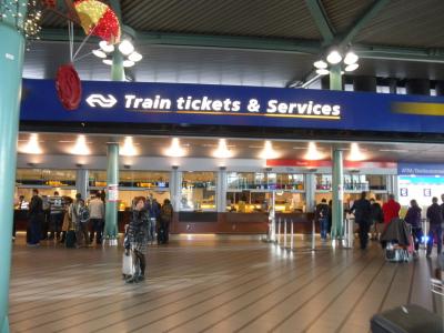 ・自動券売機では、日本のクレジットカードは使えないそうですが、地球の歩き方にスキポールとアムステルダム中央駅だけ日本のクレジットカードが使えると書いてあったので試してみたところOKでした!カードの挿入方法がちょっと独特ですが、出発・到着駅の最初の2文字、1等or2等、乗車日を選ぶだけで簡単に購入できます。もちろん英語です。