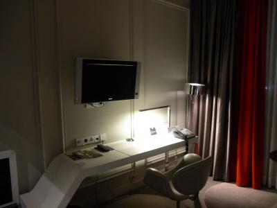 部屋はモダンでブリュッセルらしいインテリア。デスクが大きいし、ビジネス仕様な印象も。とりあえず、備品他を羅列: