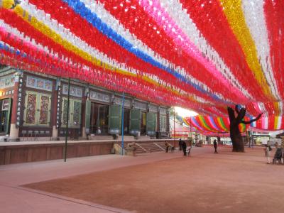 ところが、本堂に入ると、真剣に祈る人でいっぱいでした。日本だとおじぎして手をあわせて終わりですが、韓国はちゃんと経本読んで立ったり座ったりと深くお辞儀をして、時間をかけてお祈りするのが作法のようです。- 旅行時期