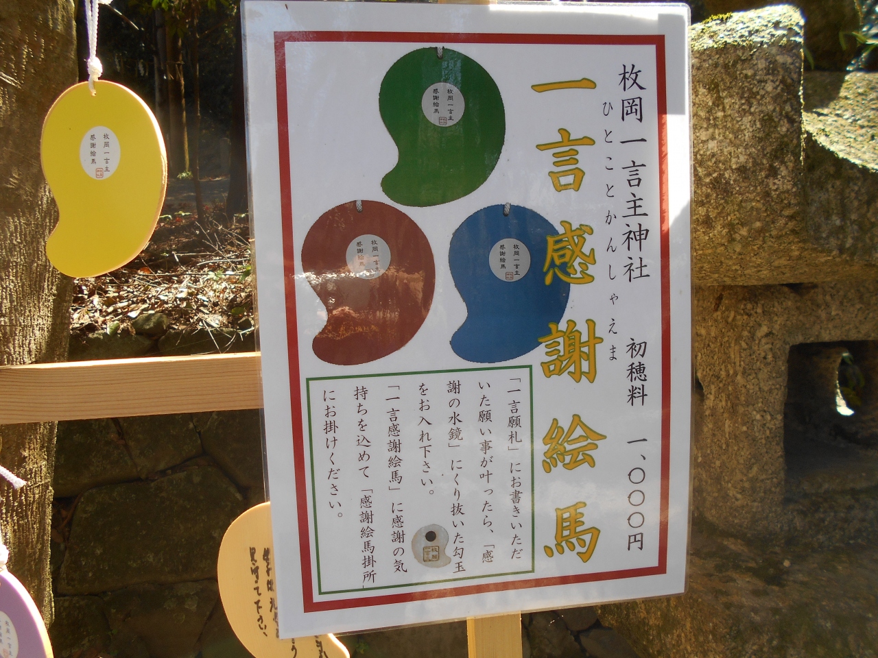 こちらはお百度まいりでも有名。お百度石は他の神社でも時々見かけますが、実際に歩いている人を見たことはない。それがこちらではぞろぞろと、私が訪ねた時には20人ほどが歩いてらっしゃいました。僕にはそこまでする願い事がないので、やめておきました。お守りの横に百回をカウントするためのこよりもありました(代金は気持ちでお支払い)。百本のこよりを筆のように束ねたもので、お参りのたびにこよりを一本折っていく仕組みです。- 旅行時期