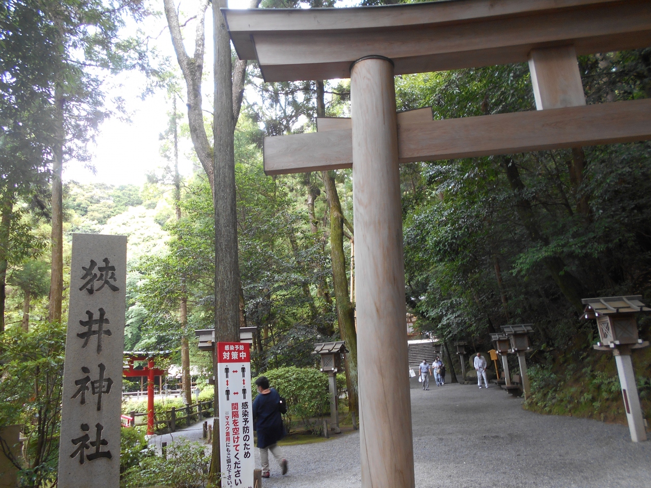 大神神社の拝殿からちょっと歩いただけなのに雰囲気が違います。大神神社の拝殿はすっきりして明るいのですが、こちらは木々に囲まれて清涼な雰囲気です。