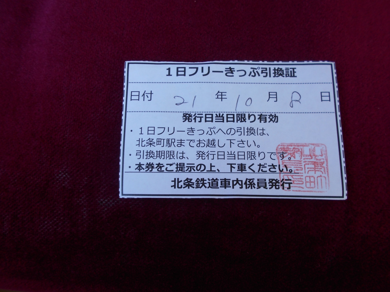 解せないのは一日フリー切符の取り扱い。粟生駅から法華口駅の区間を最初に乗車した際に車内で買ったのですが、渡されたのは切符ではなくて引換証。有人の販売駅が北条町駅だけのようで引換証を渡されたのですが、なぜ二度手間をかけて北条町駅で引換証を切符に交換しなければならないのか、意味がわかりません。車内で料金を払っているので、その場で切符を渡せば済むことだと思うのですが。北条町駅を利用しない人は、切符を手にする機会はないですし。- 旅行時期