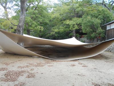 ここにきたのは豊島美術館を設計した西沢立衛氏が製作したアート作品が目当てでした。2枚の大きな鉄板とそこに生えていた樹木との融合というのでしょうか、共生というのでしょうか、波打つ鉄板がハンモックのようにも見えました。で、作品タイトルは葺田パヴィリオン。パヴィリオンねえ…現代アートは易しく難解です。- 旅行時期