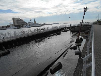 阪神淡路大震災で瓦解した波止場の一部がメリケンパークの一画に保存展示されています。大きなコンクリートの塊があっけないほど簡単に崩れた様は地震の揺れの大きさを示しています。そばにはその後の復興の様子がパネルで展示されています。
