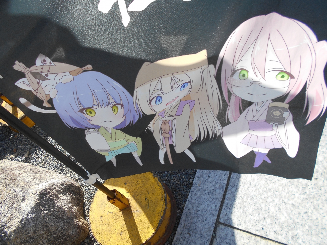 ここでも萌えを意識したのぼりと絵馬が。黄門様、助さん格さんがこんな姿になるなんて。なんでもキャラクター化すればいいってもんじゃないと思うのだが。"- 旅行時期
