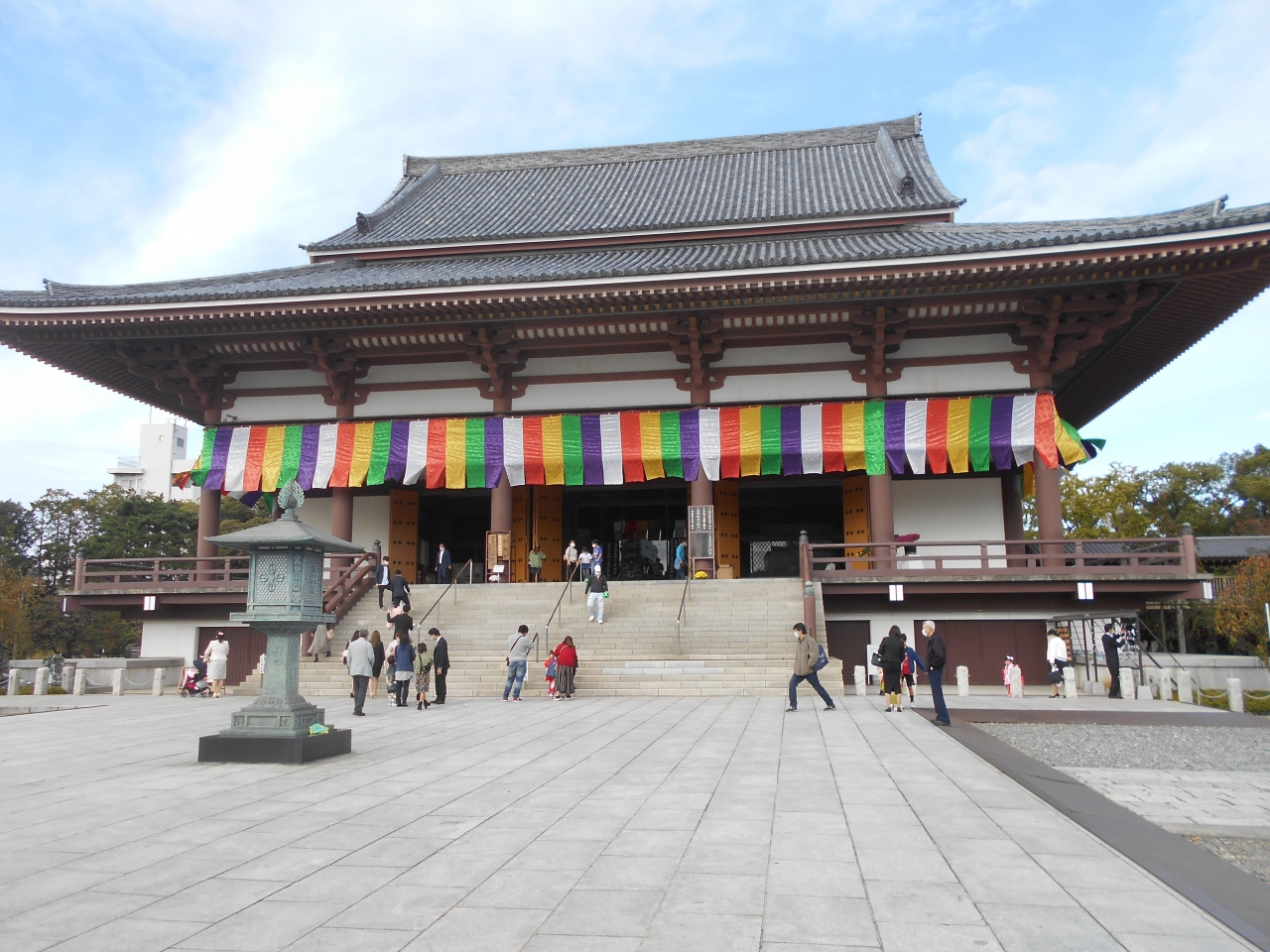 すっきりした境内正面に大きな本堂。ガラス越しではありますが、本堂の中もよく見えます。護摩祈願を申し込むとガラスの内側に通してもらえるようです。