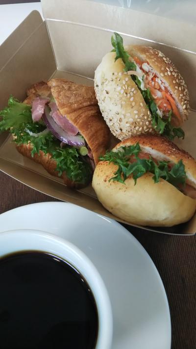 フランス弁当と名のついた惣菜パンのセットとコーヒーで560円、比較的リーズナブル。サーモンやハムをつかったものでまずまずおいしい。