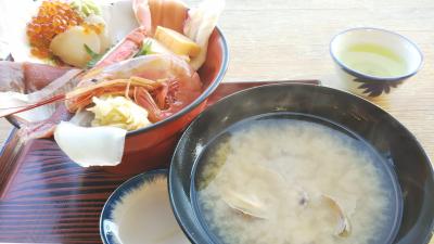 海鮮丼を注文。刺身の種類が多く楽しめました。値段のわりに豪華です。ただ、切り身が大きすぎると思いました。二切れに切り分けた方が食べやすい。インスタ映えをねらって見た目を追求しているのかな。カニは豪華に見えますが、コストをかけて冷凍のさほどおいしくないカニなんかのせずに、地味でも地元で獲れた新鮮な刺身でいいのではと思いました。- 旅行時期