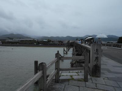 嵐山を代表する観光名所ですが、中央が車が走る二車線道路でのっぺりしたアスファルト敷きというのでは風情はありません。それでも欄干がコンクリート製ではなく木製というのは良心でしょうか。川幅が想像以上に広く、数年前の集中豪雨でこのあたり一帯が浸水したというのが信じられません。- 旅行時期