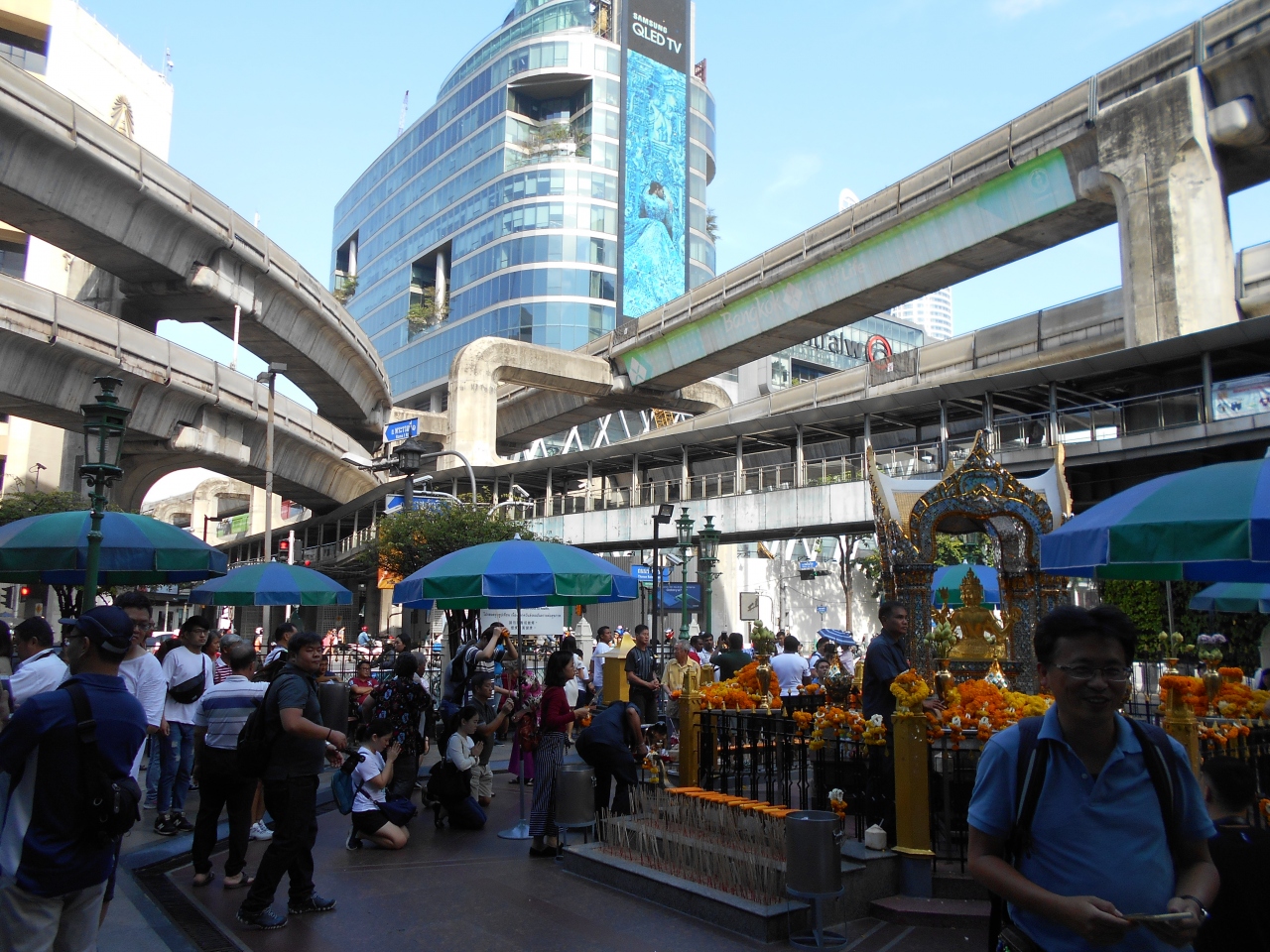 バンコクで最もご利益のある神様だそうです。都心にあるのでバンコク滞在中に2度通りましたが、両日とも人でいっぱい。さして広くないので、お供えの花やろうそくでいっぱい。観光客でワサワサ。