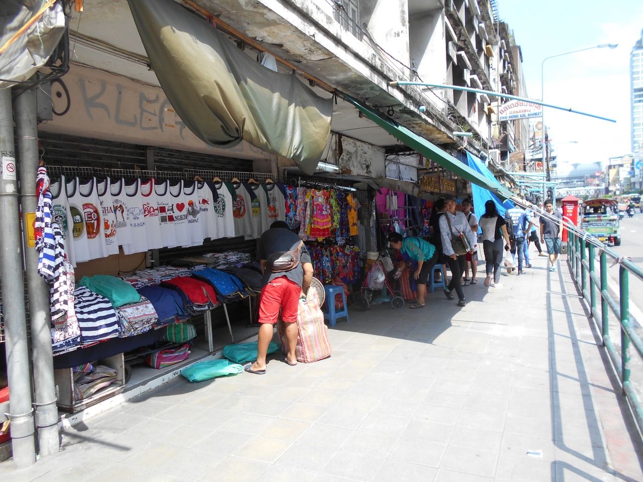 プラトゥーナム市場は築数十年の古ぼけたビルの一階、『安かろう、それなりに』品質の衣類や、ブランドロゴの入った(偽物多数)の衣類を扱う店がいっぱいです。おしゃれにディスプレイしようなんて気がない。