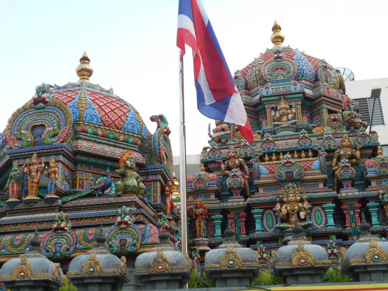仏教国タイには珍しいヒンズー教の寺院。たくさんのヒンズー教徒が熱心に参拝していました。