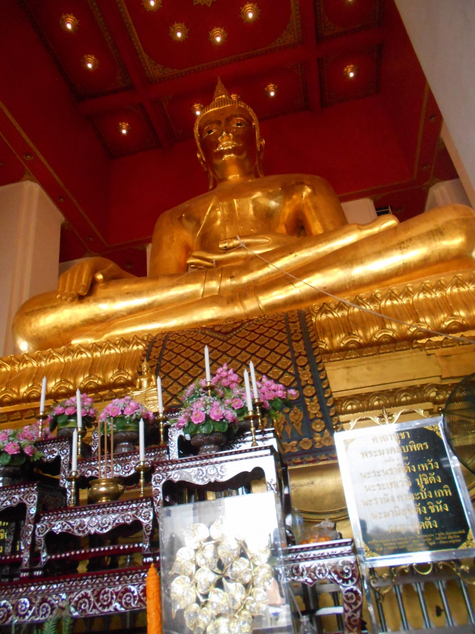 タイの仏像はどこでも金ピカなのに、どうしてワットトライミットだけ黄金仏というのかと思ったら、大概の仏像は金箔を貼っただけで中身に金は使われていないのだが、こちらの仏像は中まで金が使われている(100%ではない)そうです。そうとわかると、なんだかありがたみがあるような。