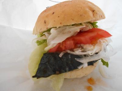 バンズに挟まれているのがかつおのたたきだけあって、冷えている。生野菜とかつおのたたきに違和感はありません。さっぱりとしたマヨネーズとの相性がいいのでしょう。