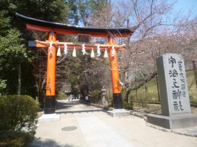 平等院からは宇治川を渡った対岸にあります。日本最古の神社建築なのだとか。鳥居のそばに大きく「世界文化遺産宇治上神社」との碑。ここでも世界遺産アピール。