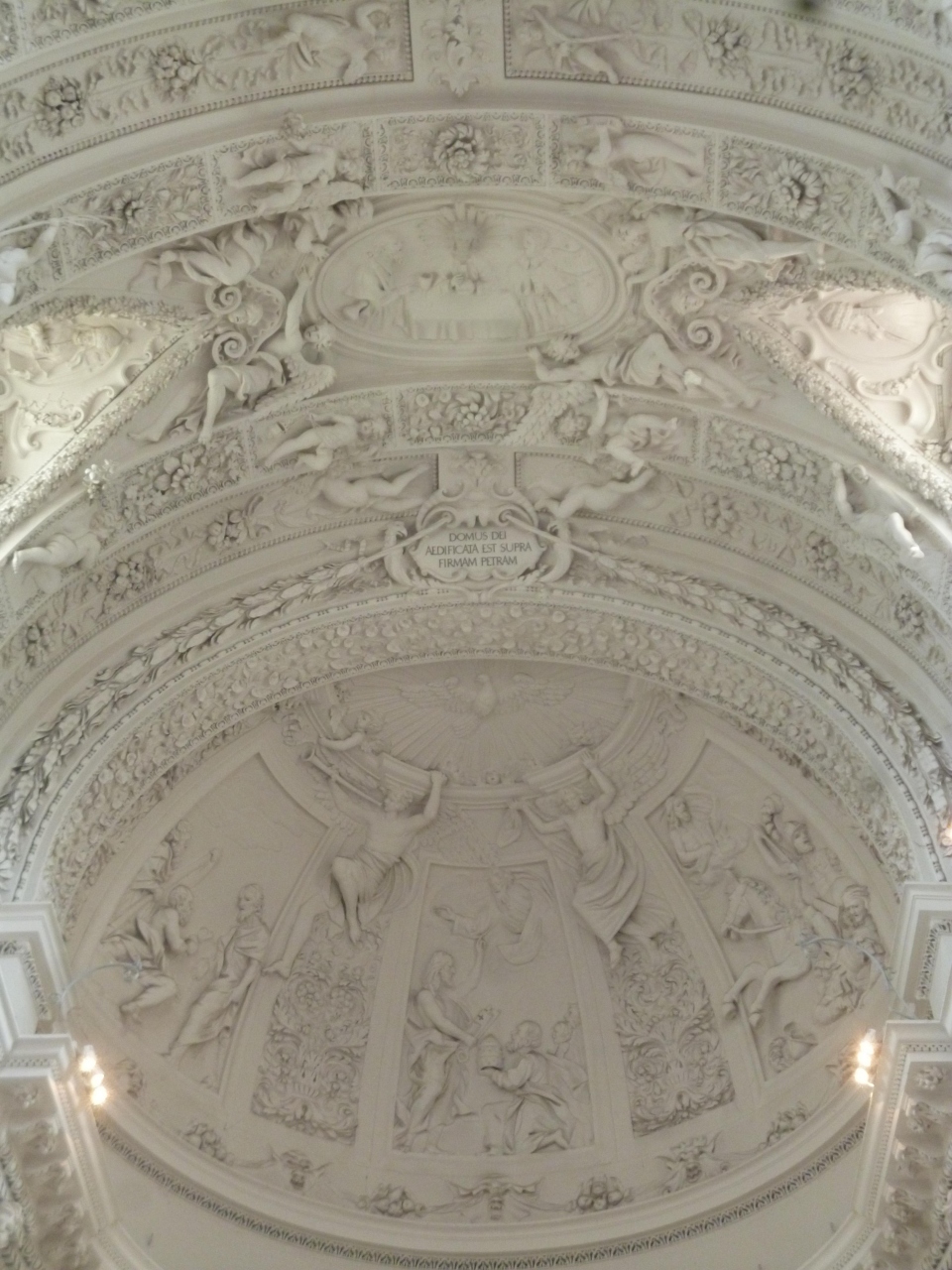 で、いざ中に入ってみると立派。天井も彫像も華があって贅沢。