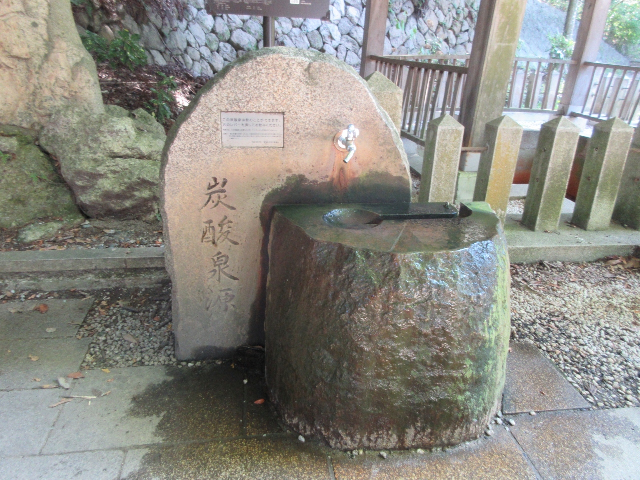 木々に囲まれた公園の一角に炭酸泉がわく井戸があります。井戸の水は飲めませんが、すぐ横に蛇口があって、こちらは飲泉可です。飲んでみましたが、金属味をまず感じて、炭酸のはじける感じはないですね。