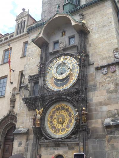 旧市街は見所が多いけれども、その中でも観光客が殺到するのが天文時計。時計前は十分な広さがあるけれども、観光客で埋め尽くされていて、時計に近寄れないほど。からくりが動くのをカメラにおさめたい人は早めに場所を確保しないといい絵がとれません。天文時計は16世紀に作られたものだそうだが装飾が鮮やかで古さを感じない。文字盤のデザインが面白く見飽きません。人が少ない時間帯だったらじっくり見学できたのに。