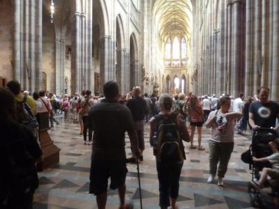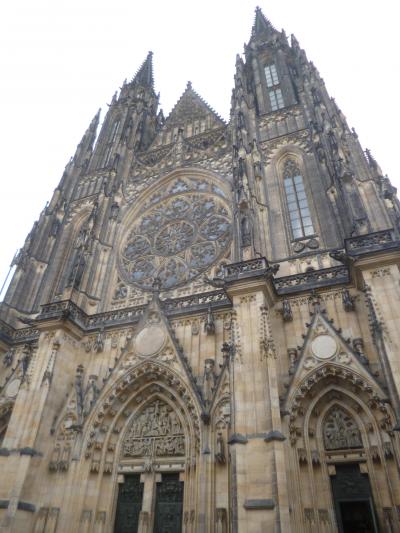 プラハ城に入場すると目の前にそそり立つゴシックの大聖堂。正面の広場に奥行がないので、見上げる状態になります。