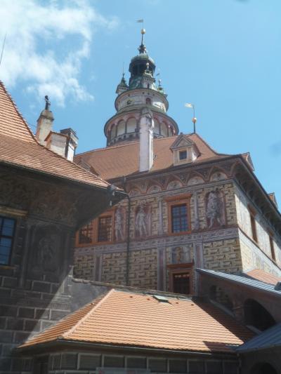 チェスキークルムロフの旧市街をぬけた先に城があります。特別に格好いい形ではないと思いました。壁には装飾が取り付けられているように見えますが、そのほとんどが平面の壁に描かれた絵。まあ、これがこの城の最大の見所でしょうか。ただし観光客があまりに多くて落ち着きませんでした。