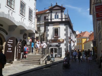 観光客に人気の高いチェスキークルムロフ。ある程度の人ごみは覚悟していましたがこれほどとは。狭い通りは人だらけ。町の方もカフェや土産物屋、ちょっとしたドリンクを売る屋台などでいっぱいです。小さな町が観光産業で成り立っているのがよくわかりますが、やり過ぎに思います。川があって緑があって、自然に抱かれた旧態の町という雰囲気が感じられず残念でした。