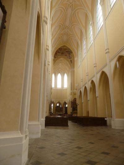 クトナーホラの旧市街からはやや離れているので、観光客は近くにあるセドレツ納骨堂とセットで訪ねます。セドレツ礼拝堂が混雑していたのにこちらはひっそり、正直、展示物があまりないので、数分立ち寄っただけで出て行ってしまう人が多いようです。内部は柔らかなパステルイエローです。
