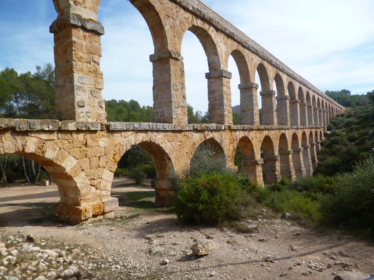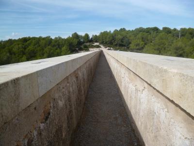 自然公園の中に、谷を渡すように古代ローマの水道橋があります。二段のアーチの美しい橋です。高さ26メートルの橋の上を歩いて渡ることができます。歩行面の両サイドの石壁は手摺程の高さがあるので、安全に歩けます。ヨーロッパ各地に水道橋はありますが、上にあがれるのは珍しいと思います。修復の手は入っていますが、当時の雰囲気は楽しめます。