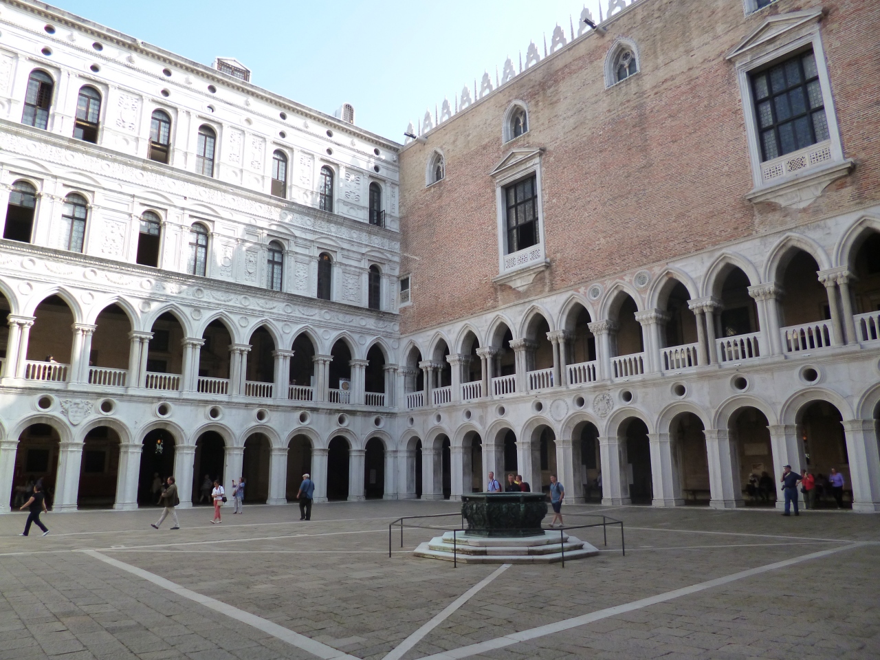 多くの宮殿が国王や大司教といった一人の権力者によって造られたのに対し、ドゥカーレ宮殿は複数の商人によって運営されていたというのが、大広間の造りなどに垣間見えて、興味深かったです。