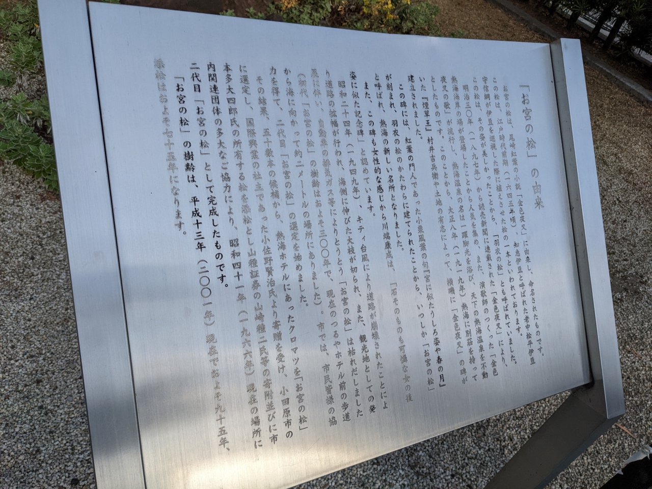 尾崎紅葉の紹介と共に、「お宮の松」の由来も書かれていました