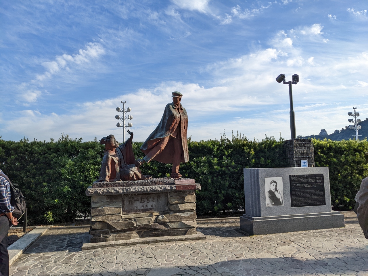 尾崎紅葉が書いた小説「金色夜叉」の、主人公の貫一・お宮の像です