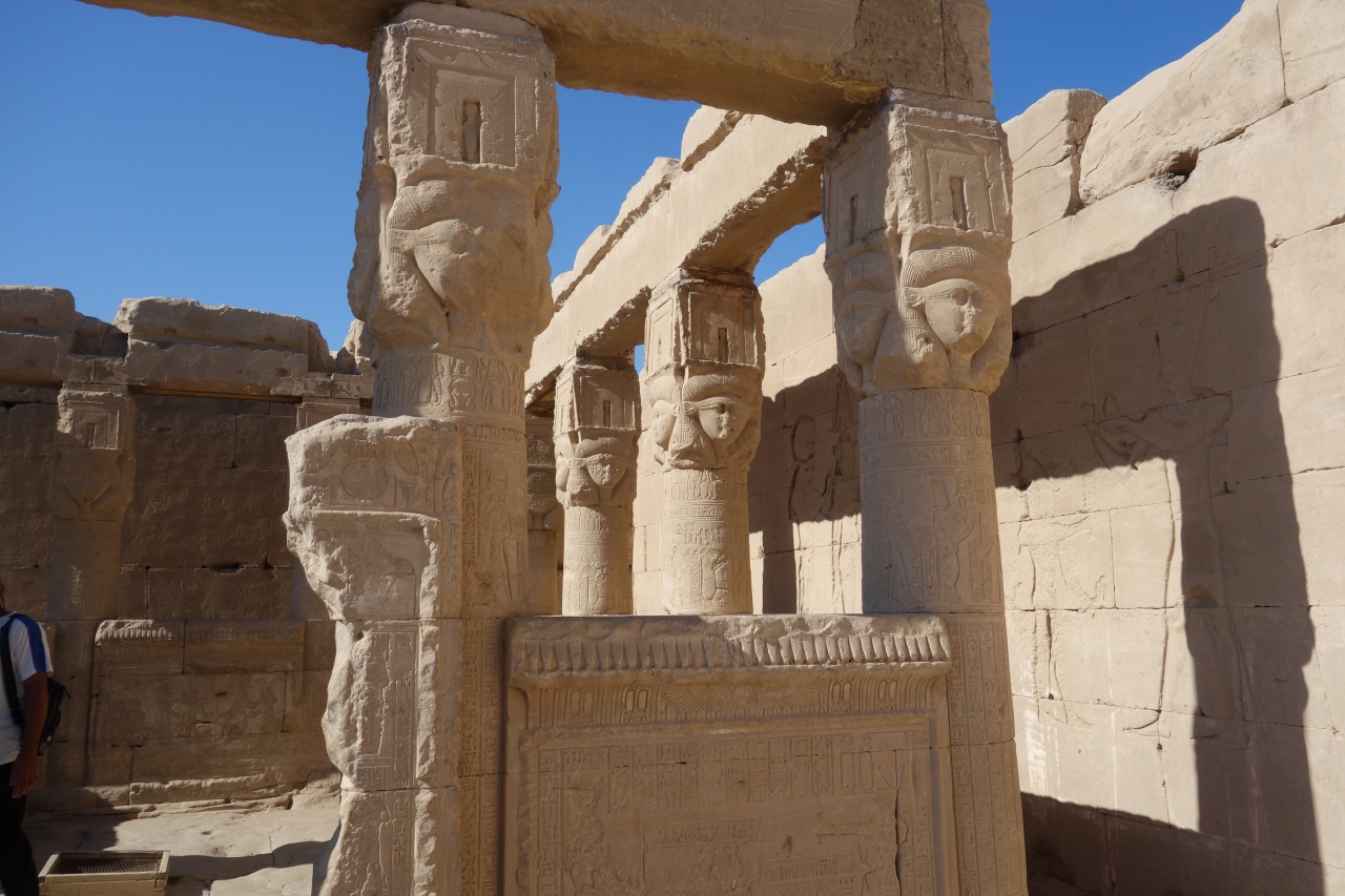 神殿の外壁には、クレオパトラのレリーフもあり
